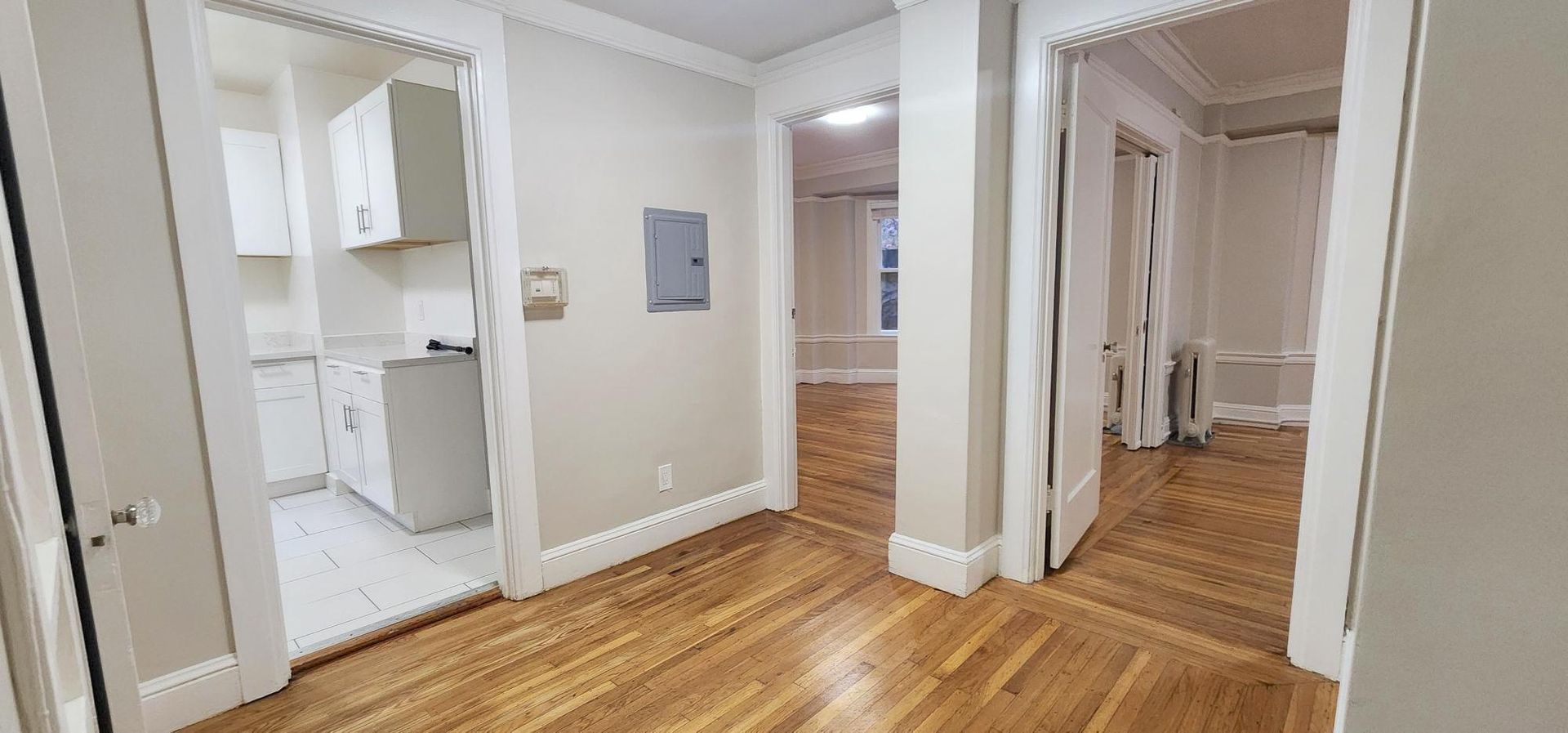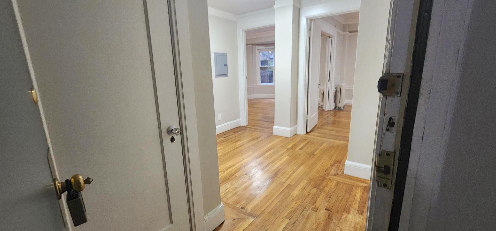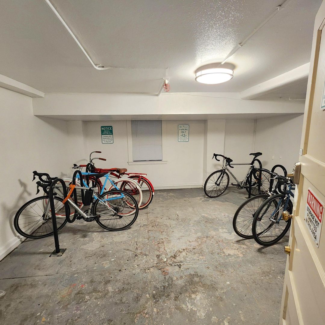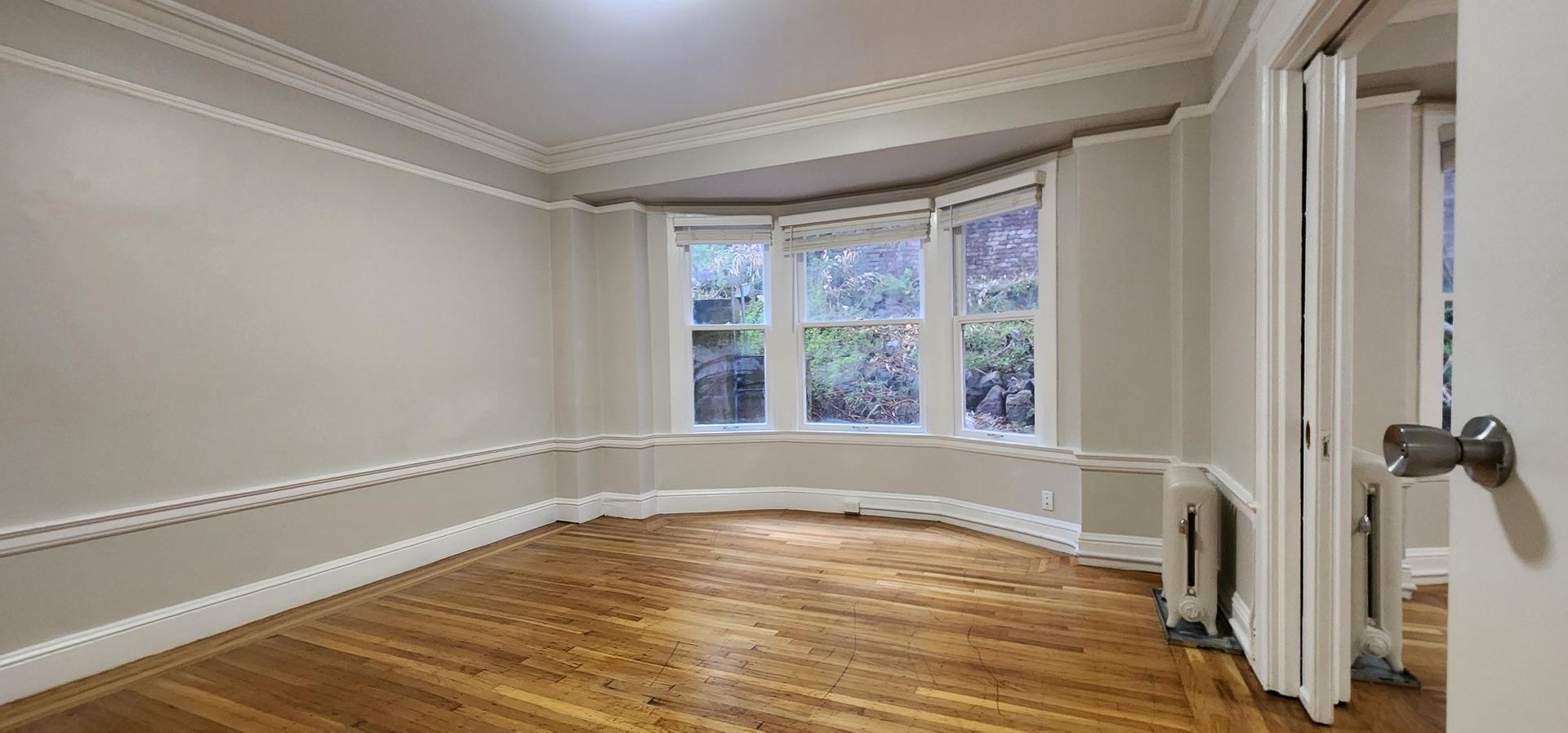 This is an absolutely beautiful and spacious flat that can be used as a one or two bedroom. It is toward the rear of the building with no one below, so it is very quiet and private, with southern light in the kitchen and sufficient ambient light in the large bedroom and living room, EACH with their own walk-in closets. These rooms look on to tropical palms and vines. The en suite bedroom has its own dressing room and access to the bathroom. There are newer appliances, plenty of storage, built-in mirrors, and pocket doors, with a nice foyer in a rent-controlled building with elevator, laundry room and large, secure bike room for use by tenants and their guests.