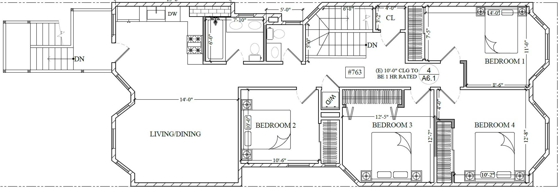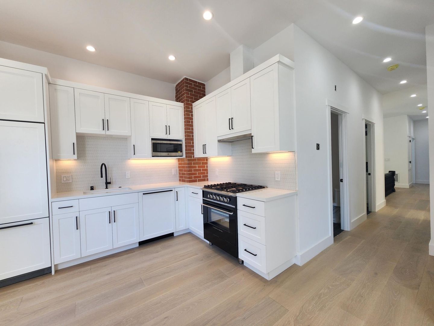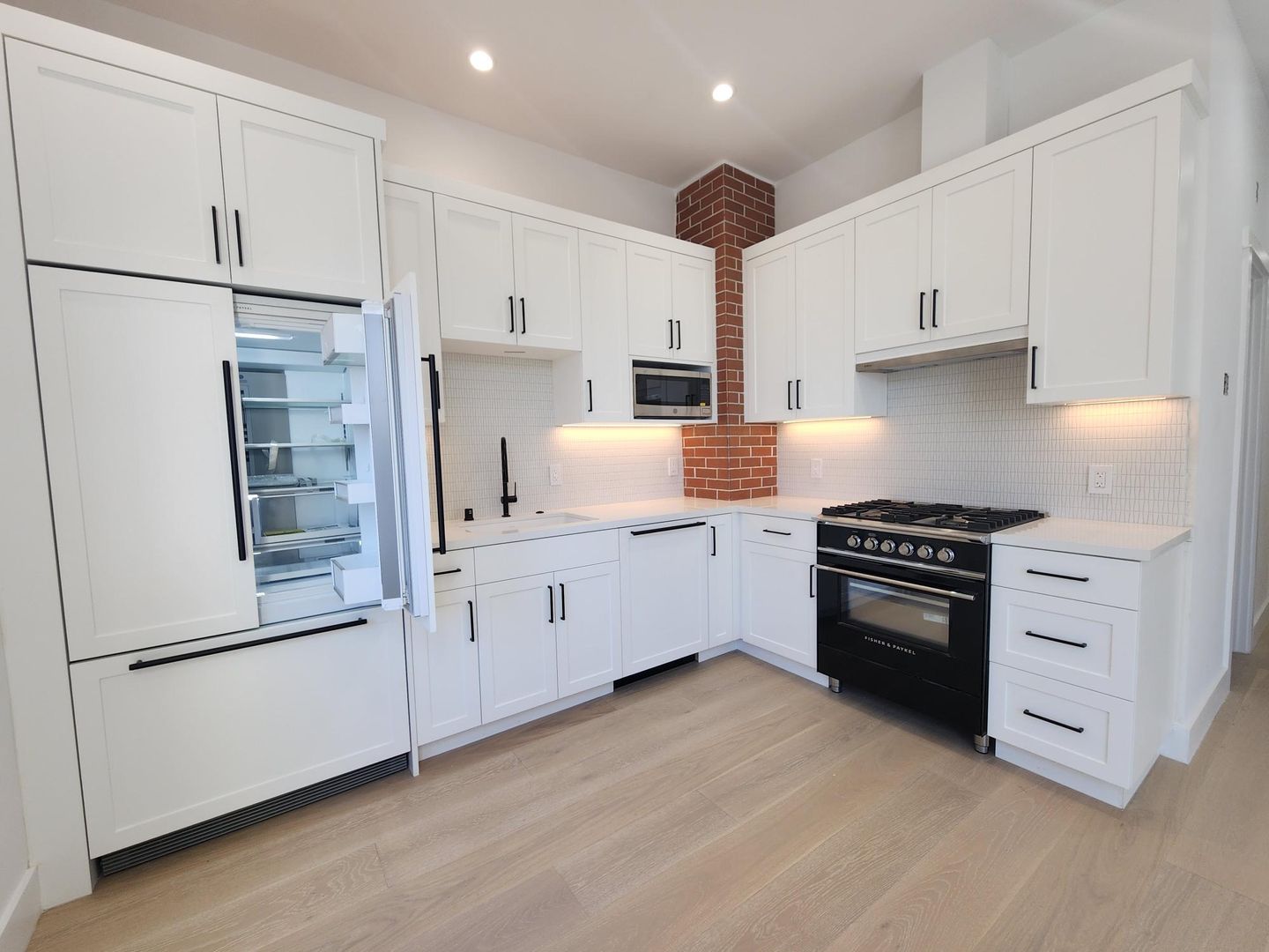 This enchanting top-floor apartment was recently COMPLETELY remodeled, ideally straddling the Castro and Duboce Triangle districts. Natural light pours into this sprawling flat with many possibilities for the 4 bedrooms, including a large living space and open kitchen replete with the most upscale of appliances.