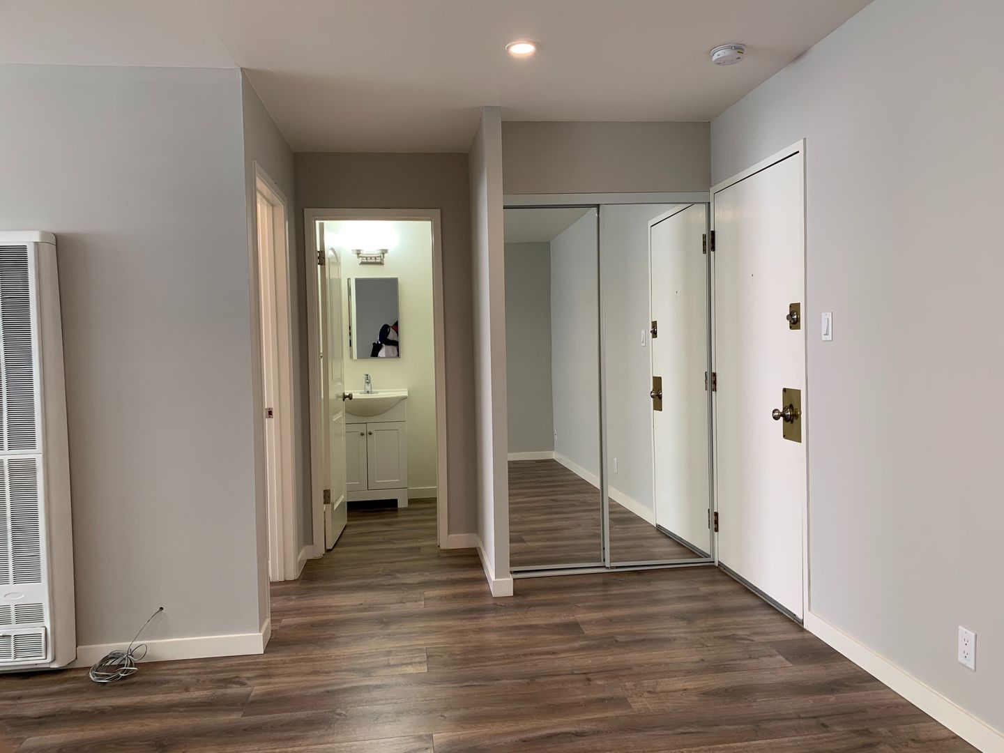 This beautifully upgraded one-bedroom apartment offers a perfect blend of style and comfort. The unit features double-pane windows, wood laminate flooring, modern lighting, elegant crown molding, and sleek 2-inch blinds. The kitchen is equipped with stainless steel appliances and quartz countertops, while the bathroom includes updated fixtures and a contemporary vanity. Updated doors and hardware complete the modern design. The property also features secured access with an intercom system, on-site management, laundry facilities, and an elevator.